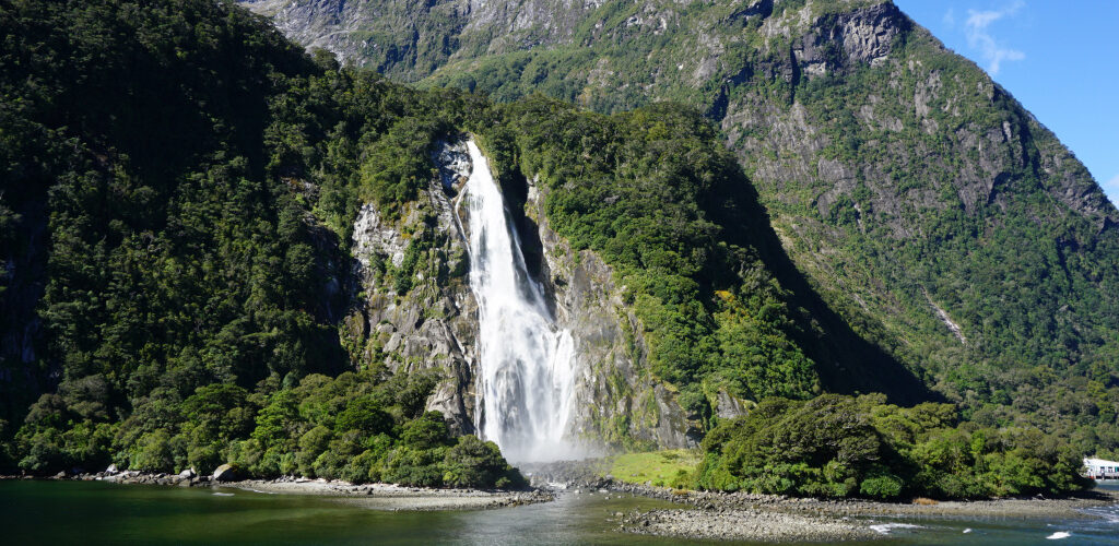 Z lasów wypływają liczne wodospady. Kilka scen do “Władcy pierścieni” powstawało właśnie Milford Sound co chyba nikogo nie dziwi 🙂